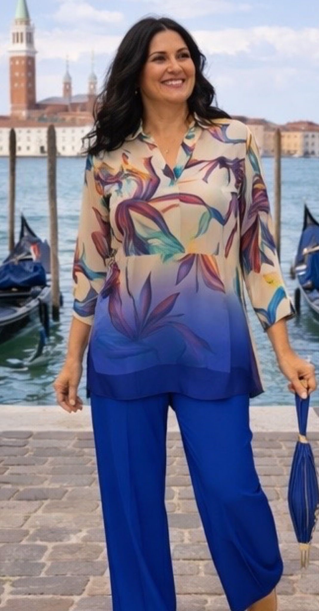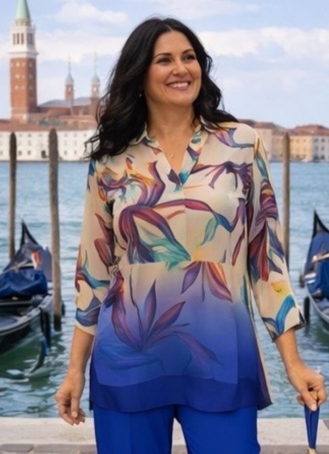 Elegante camisa larga con manga francesa, ideal para combinar con pantalón y crear un look sofisticado e informal. (Consulta nuestro apartado de pantalones).