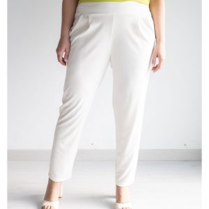 Pantalón de punto liso con pinzas y goma en la cintura.