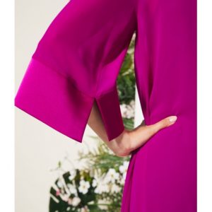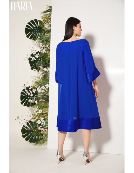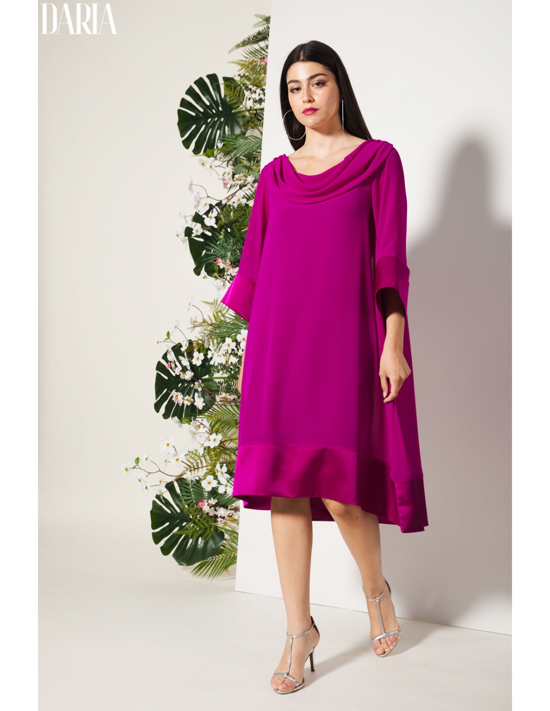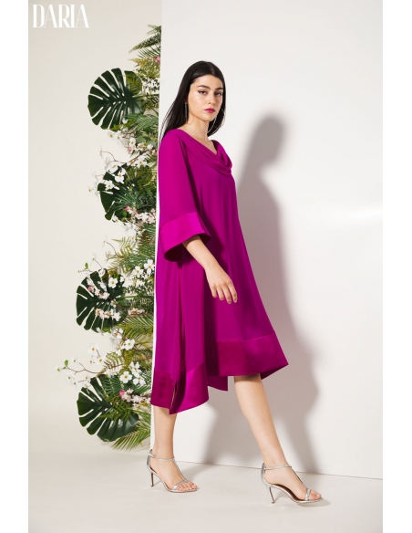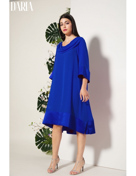 Vestido de fiesta liso de corte ultra evasé, diseñado para aportar ligereza y movimiento a la silueta. El escote drapeado cae con suavidad, creando un efecto elegante y femenino. El bajo y los puños en raso a tono añaden un acabado sofisticado y delicado. Incluye vestido interior a tono para evitar transparencias y garantizar comodidad. Una pieza especial, pensada para ocasiones en las que quieres destacar con elegancia.